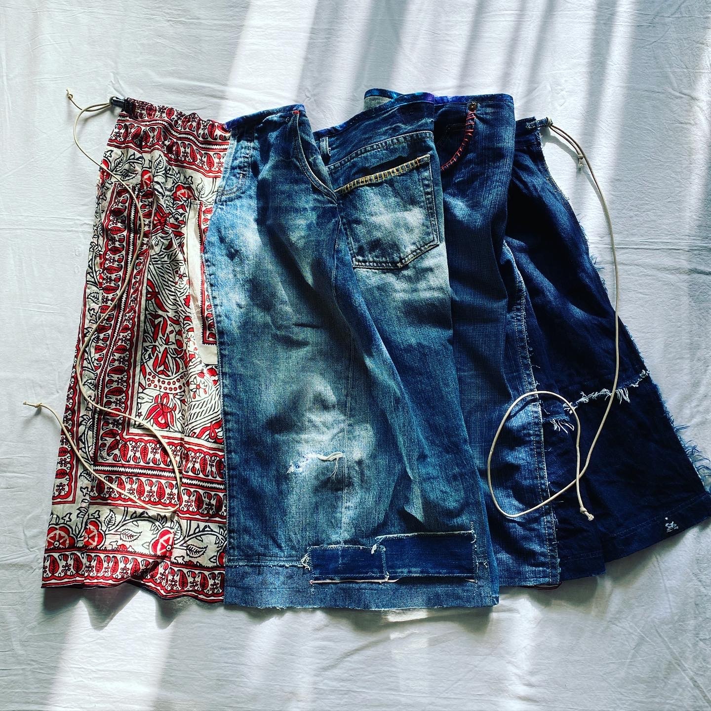 先週お嫁入りしたリメイクデニムの巻スカートは