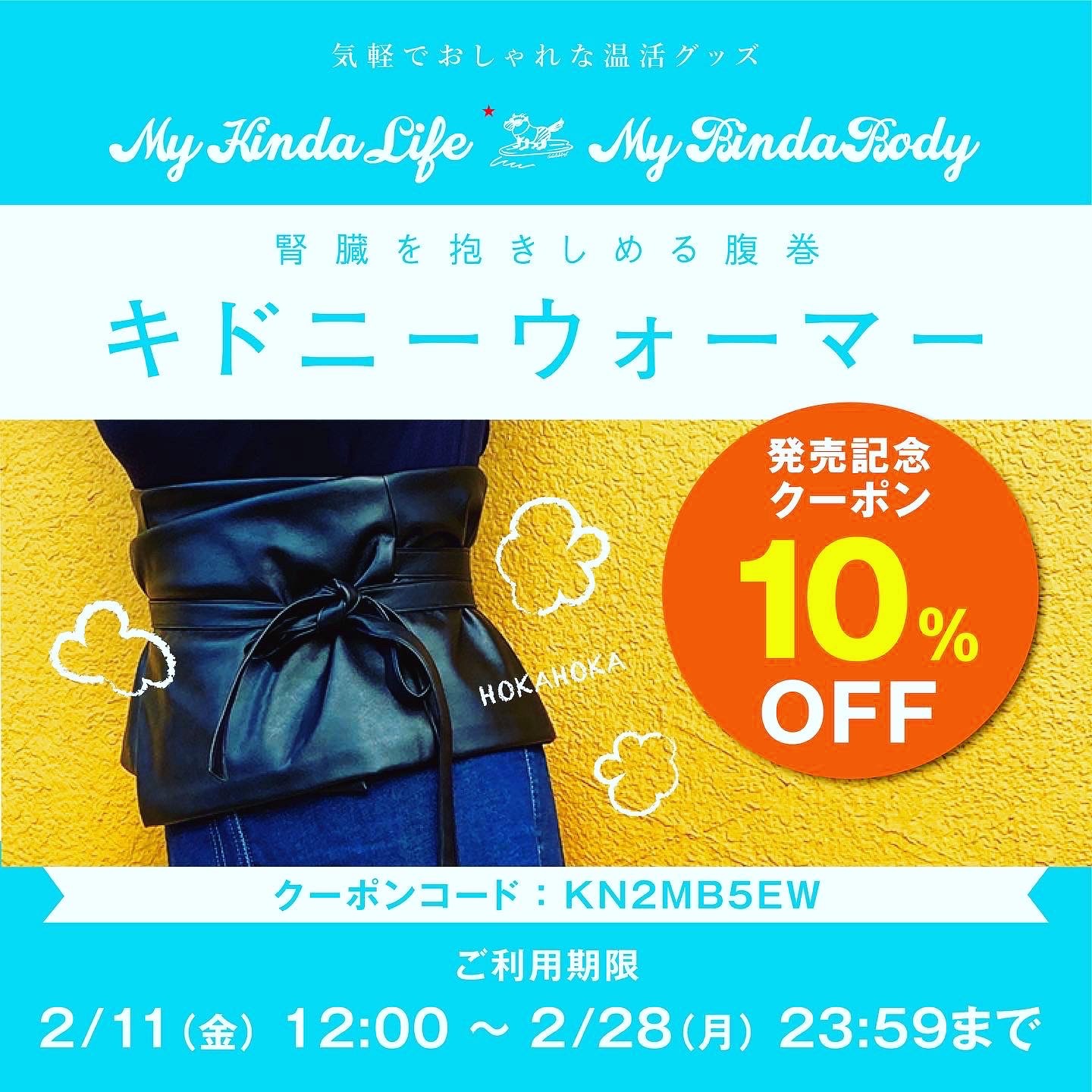 <キドニーウォーマー発売記念クーポン>購入金額が7,000円以上で利用可能、先着20名さま限定。10%引きになるクーポンコードです→【 KN2MB5EW 】購入する際、こちらのコードを入力してください。