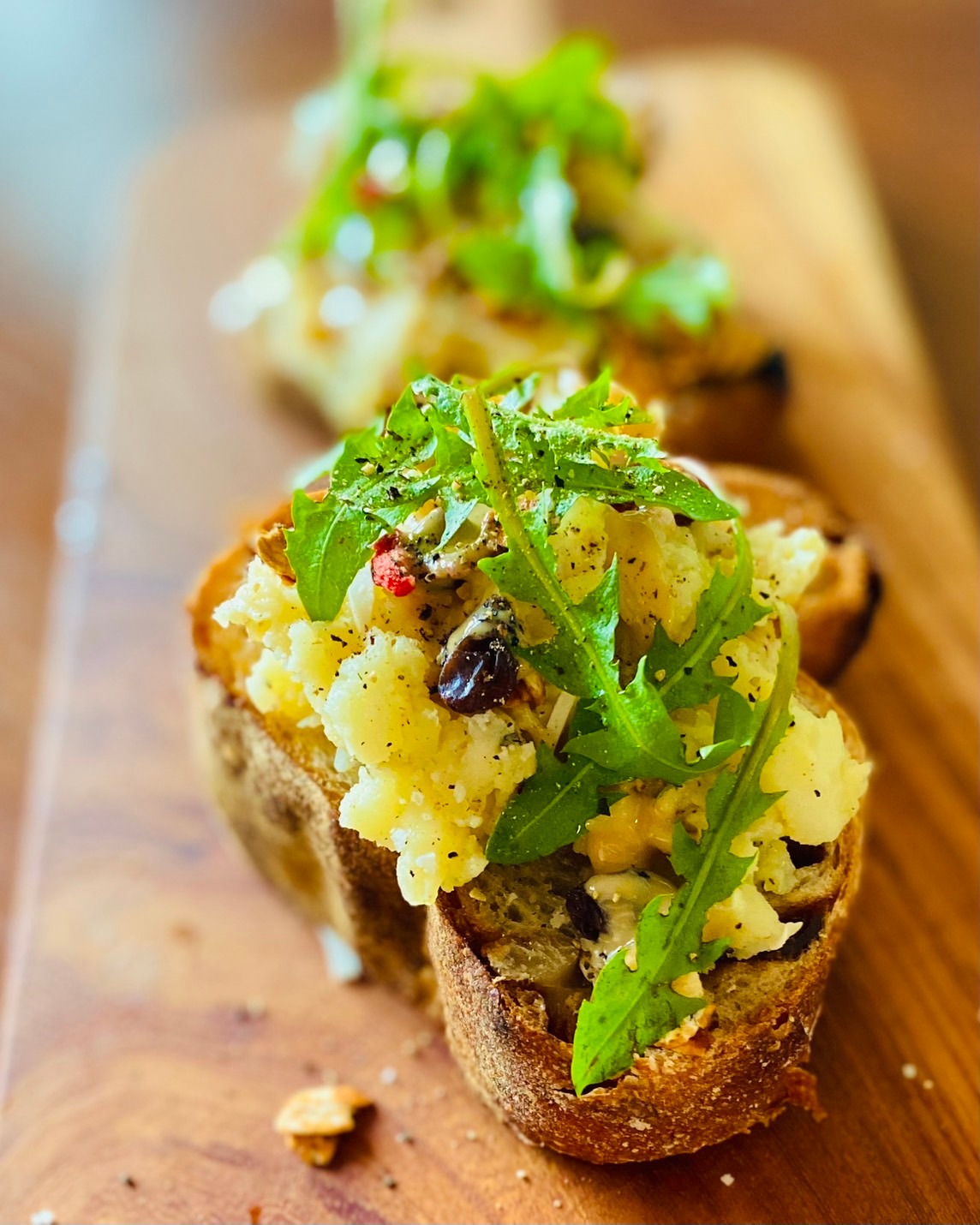 たんぽぽの葉と新じゃがいものタルティーヌ。
