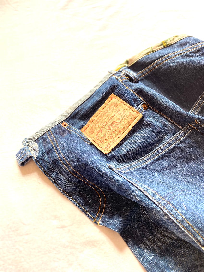 ウエスト部分のデザインは、U.Sコットンやアロハの古着を使用して、