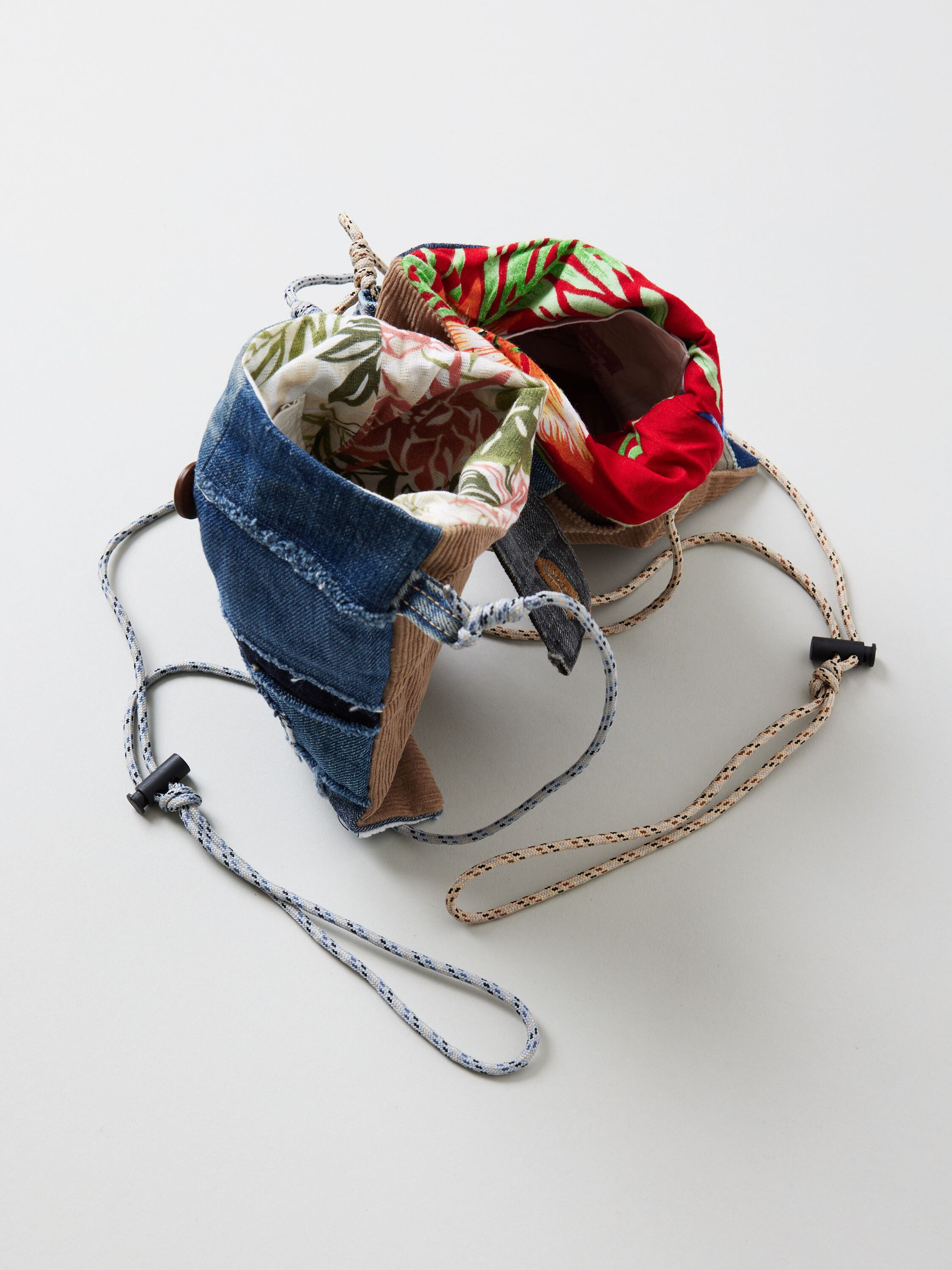 捨てるはずの古着を使用して、新しく生まれ変わったサスティナブルなリメイクデニムのサコッシュです。ディティールにこだわったダメージ加工や、ウッドボタンは水洗いして削ったりと、ボタンの一つ一つに至るまで、職人が一つ一つ丁寧に手を入れています。内側はアロハシャツ、背後はコーデュロイ仕上げ。コーデュロイ仕上げはつけているときに、デニムで擦れてお洋服に色がついたりしないようにしています。スマホをガボッと入れられる大きなポケットをつけました。リメイク品ですので、一つ一つ微妙に仕様が違い、二度と同じものに出会うことはできません。たった一つのあなたのリメイクデニムサコッシュに出会ってください。