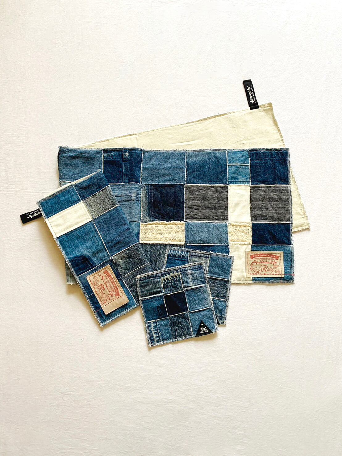 サスティナブルなリメイクデニムのテーブルマットです。